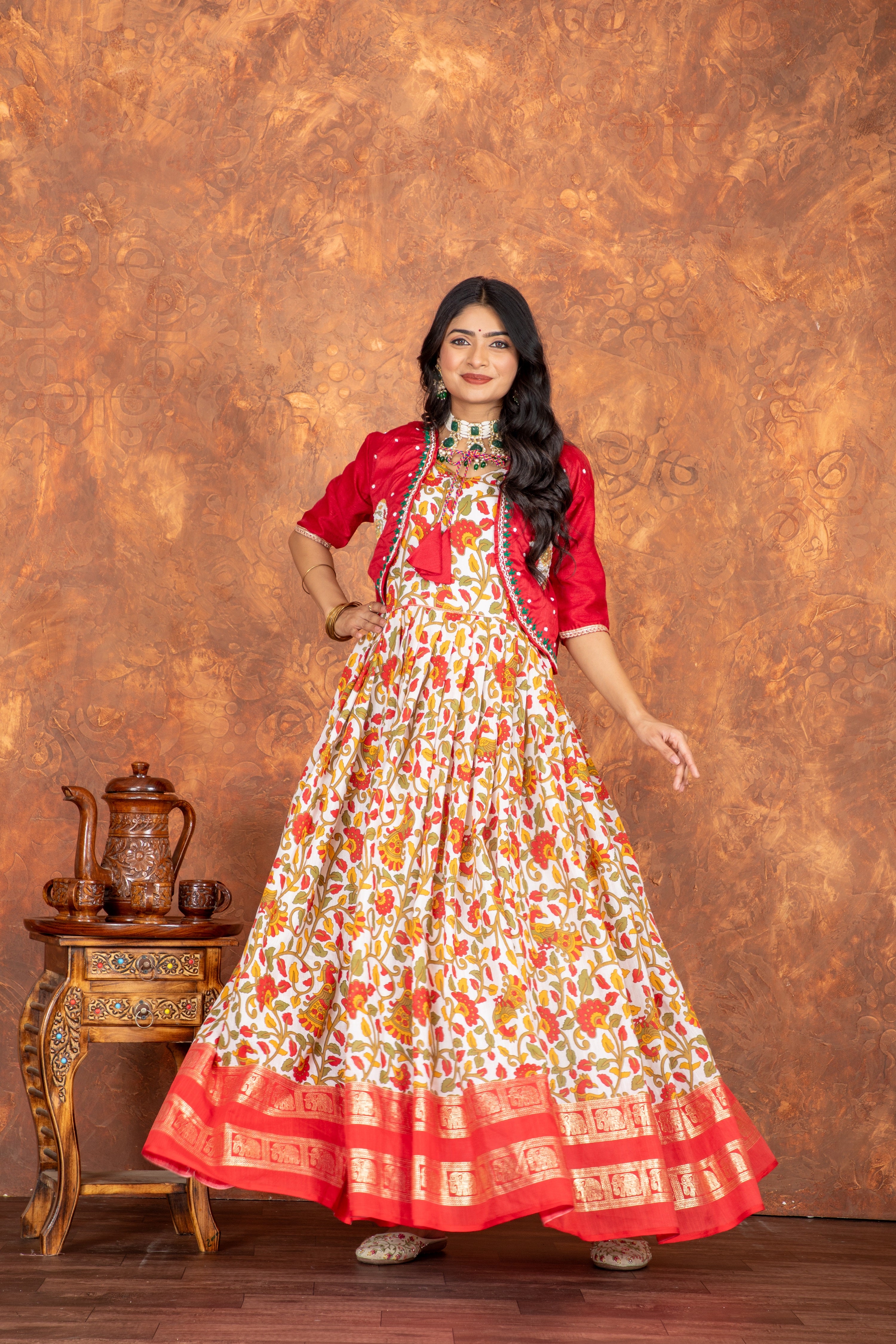Designer Double Flair Gown is Pure Heavy Cotton Linen clothing Considered to be high Premium Foiled Print Elephant Design Border Work. This is Made for Desirable Women's who deserve it
